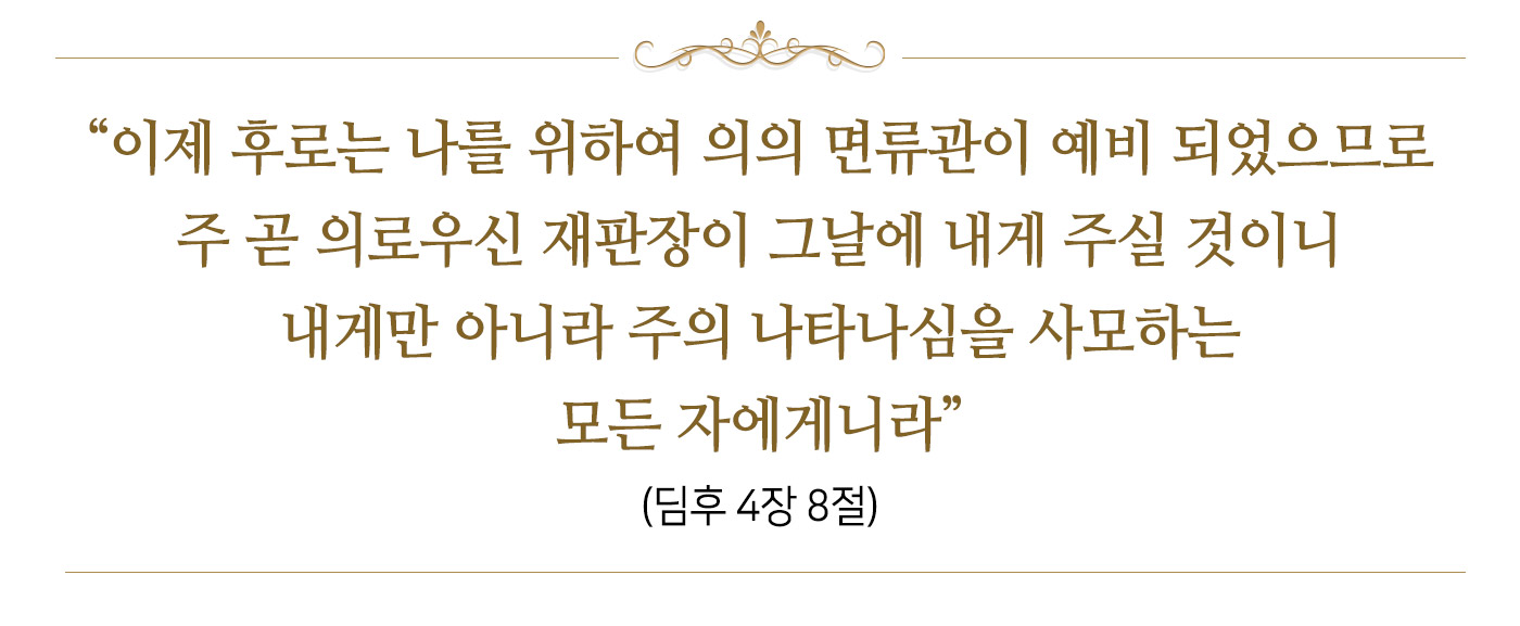 이 땅의 금관도 이토록 찬란하고 웅장할진대 하늘에 예비 된 면류관은 얼마나 영광스럽고 아름다울까. 생각만 해도 가슴이 벅차오른다. 오늘도 하나님의 약속을 마음에 새기며, 하늘 아버지 어머니께서 씌워주실 승리의 면류관을 받을 수 있도록 힘차게 복음 길을 걸어가야겠다.