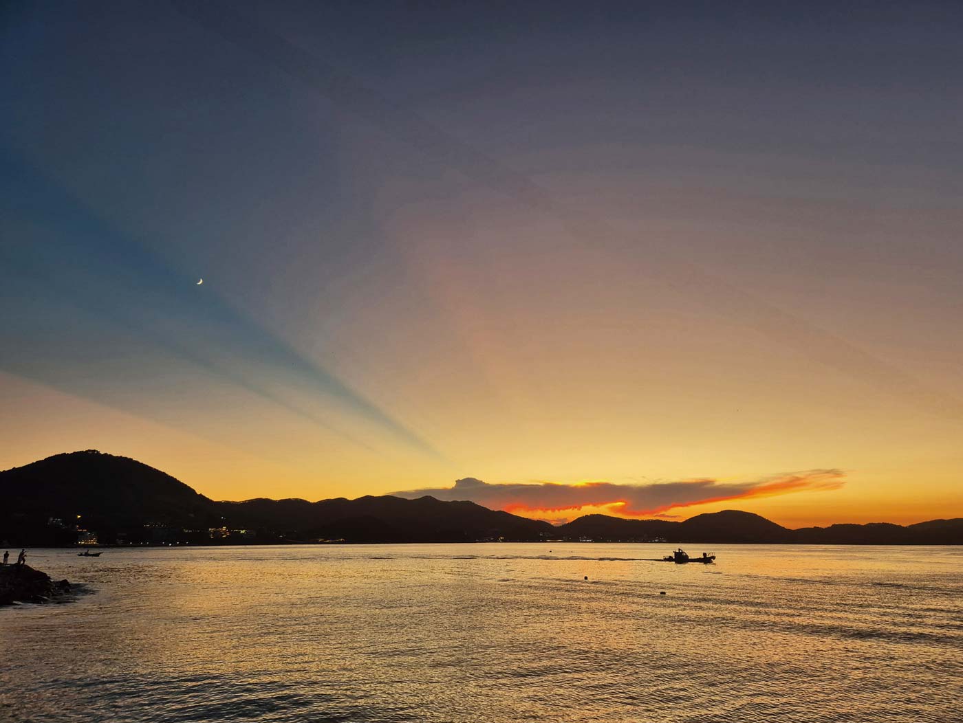 하루가 저물어가는 해 질 녘이 되자 파랗던 하늘이 금세 무르익어 아름다운 노을빛을 자랑한다. 온 세상을 붉게 물들이는 황혼, 뱃사공의 마음은 분주하다. 달에게 자리를 내어준 해가 지평선 너머로 사라지고 땅거미 진 하늘은 이내 어두워진다.
